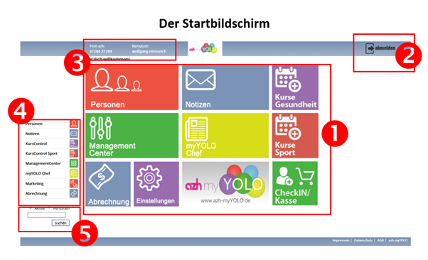 Ihre Benutzerdaten: Hier finden Sie Ihren Standort und den aktuell angemeldeten Nutzer.