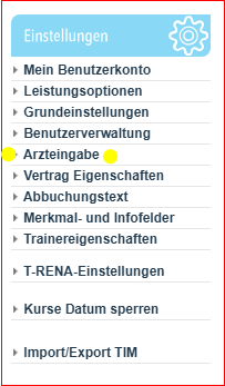 Gehen Sie über die Funktionskachel “Einstellungen” und betätigen Sie die “Arzteingabe“.