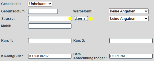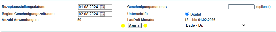 Übernehmen Sie die die vorhandenen Arztdaten von der Verordnung, idealerweise auch die LANr. (Lebenslange Arztnummer) und BSN (Betriebsstättennummer).