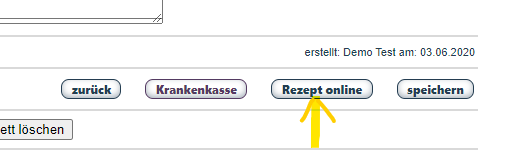In der Stammdate die Verordnung öffnen, nach unten scrollen und den Button "Rezept online" drücken. So springt ihr in das Online Portal sofort zur betreffenden Person und Verordnung.