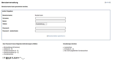 6. Betätigen Sie den Button [speichern] und Ihr Benutzerkonto wird angelegt.