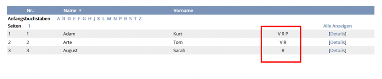 - Mit dem betätigen von “Name” sortiert die Tabelle die Personen nach Ihren Nachnamen.