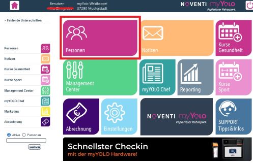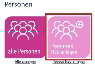 Klicke auf die pinke Schaltfläche „PERSONEN“. Anschließend hast du die Möglichkeit, zwischen den Optionen „Alle Personen anzeigen“ und „Neue Person hinzufügen“ zu wählen. Wähle die Option „Neue Person hinzufügen“, um mit dem Anlegen des Kursleiters fortzufahren.
