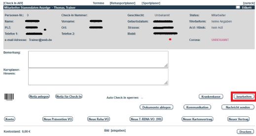 Dazu öffne die Stammdate des Kursleiters und wähle die Option „bearbeiten"