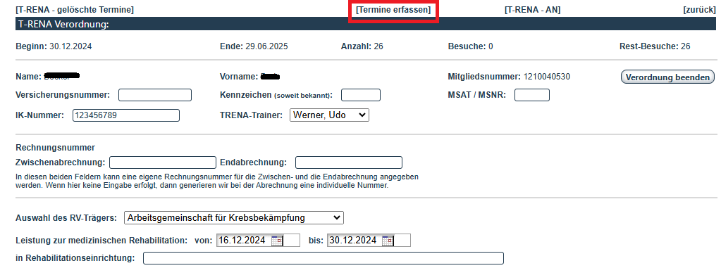 Hierzu erstellst du in der Stammdate der entsprechenden Person eine neue T-RENA-Verordnung.