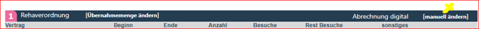 Um die Verordnungen einzusehen, kann der Benutzer den Bereich "Korrekt. Reha" in der Stammdatei aufrufen. In diesem Bereich werden alle Verordnungen angezeigt. Im Kopfbereich jeder Verordnung befindet sich rechts ein Link, über den der Benutzer die Unterschriftsoption der Verordnung von manuell auf digital und umgekehrt ändern kann.
