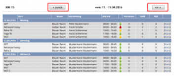 Die Wochenplaner Liste erscheint. Mit dem Button [zurück] und [vor] wechseln Sie die Kalenderwochen.