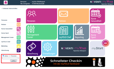 unabhängig von einer Rehasportverordnung oder einem Vertrag.) - Wenn Sie “Personen” ausgewählt haben, durchsucht die Anwendung alle Datensätze, hier finden Sie die ehemaligen Kunden, und Ihre Übungsleiter. (Diese Art der Suche ist klar zu empfehlen, sofern Sie Ihre Kunden passiveren, finden Sie diese nicht mehr über die Suchfunktion “aktive”).