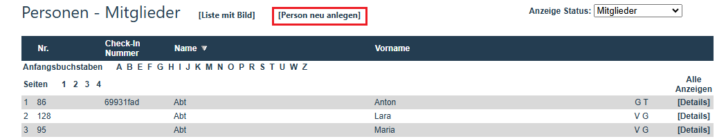 oder Sie betätigen den Link “Person neu anlegen” über der Personenliste.
