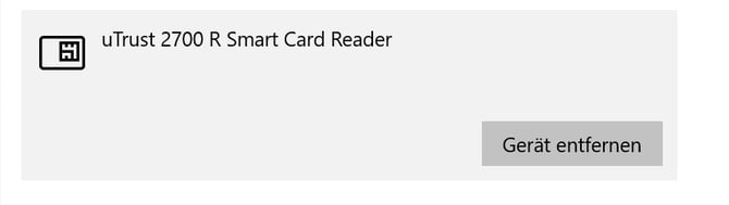 2. Gehe auf das Windows Icon unten in der Symbolleiste ganz links, wähle dort "Einstellungen - Geräte". Dort findest du den GK-Leser gelistet. Klicke darauf und wähle "Gerät entfernen".