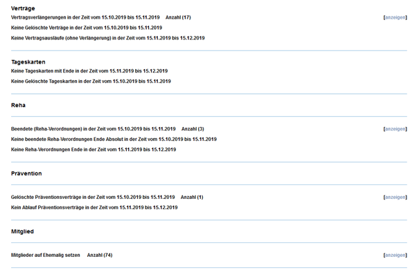 In dieser Aufstellung können Verlängerungen und Löschungen von Verträgen, Präventionen und Reha-Verordnungen betrachtet werden.