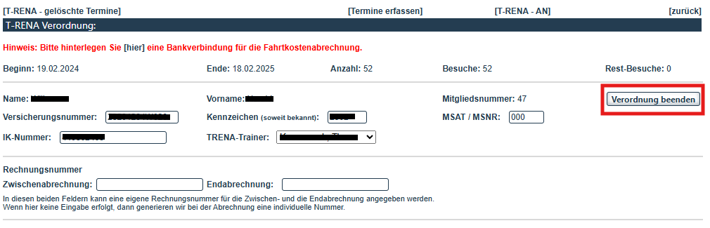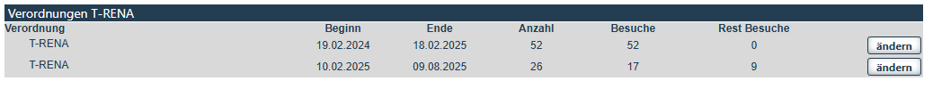 Alle abgelaufenen T-RENA-Verordnungen kannst du einsehen, indem du auf "abgelaufene T-RENA-Verordnungen" klickst. Dort hast du die Möglichkeit, die gewünschte Verordnung wieder zu aktivieren.