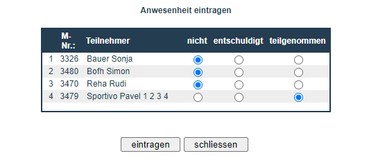 Sollten frühere Teilnahmen noch nicht in Kurse eingebucht worden sein, können sie nachträglich innerhalb der Geltungsdauer der Verordnung erfasst und die Unterschriften nachgeholt werden.