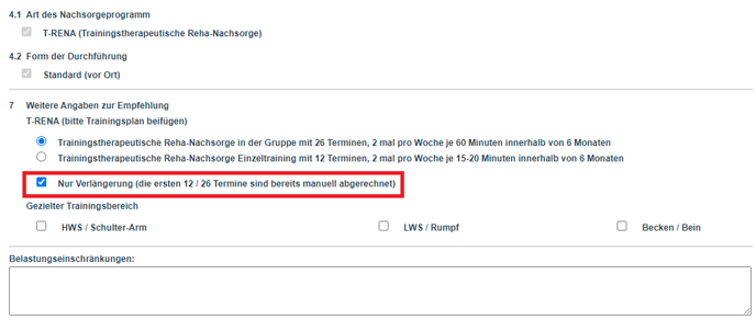 T-RENA-Verlängerung anlegen, wenn die ersten 26 Einheiten bereits manuell abgerechnet wurden?