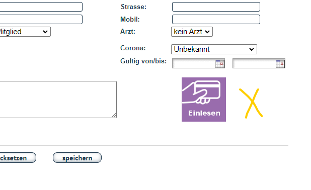 Stecke nun die Gesundheitskarte in den Kartenleser und klicke auf den Button "Daten von eGK einlesen".