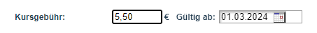 Beim Besucher von gewissen Kursen können zusätzliche Kosten pro Besuch anfallen wie z.B. Schwimmbadgebühren. Bei der Kursanlage können Beiträge bestimmt werden, die pro erfolgten Kursbesuch (Anwesenheiten) berechnet werden. Diese Kursgebühren werden immer zum Zeitpunkt der Vertragsbuchung fällig und gehen mit der absolvierten Anzahl an Terminen als Forderung gegen den Kursteilnehmer ein.