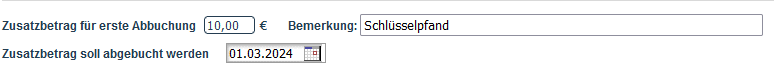 Im Personenstammdatenblatt befindet sich unten links der Button "Konto", darunter steht der aktuelle Kontostand. Einmalige Forderungen können hier entweder mit oder ohne Fälligkeitsdatum eingetragen werden, aber auch Gutschriften zugunsten des Mitglieds.